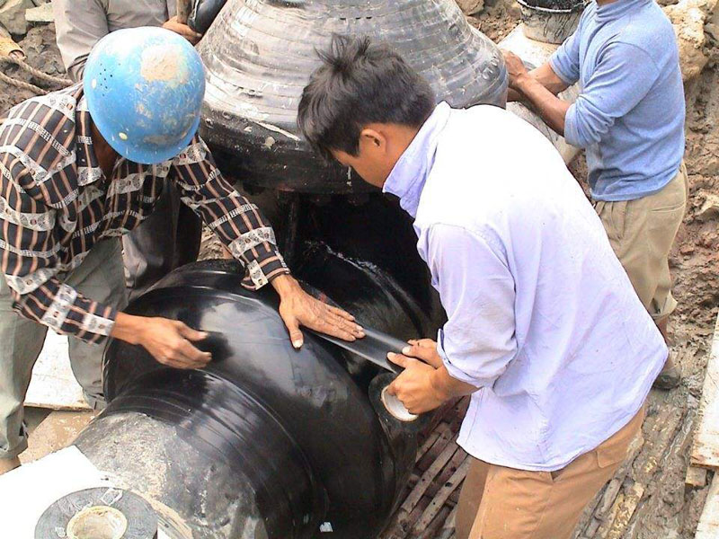 (1)聚乙烯防腐膠帶防腐層表面應平整、搭接均勻、無永久性氣泡、皺褶和破損;